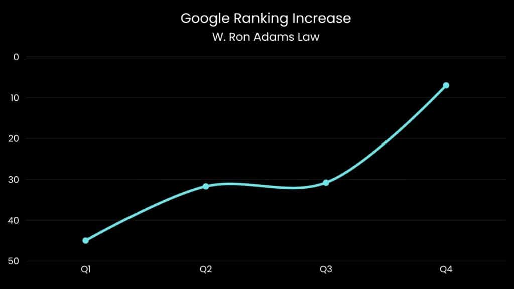 Over the course of the campaign, W. Ron Adams Law experienced significant improvements in both search engine visibility and lead generation performance.
