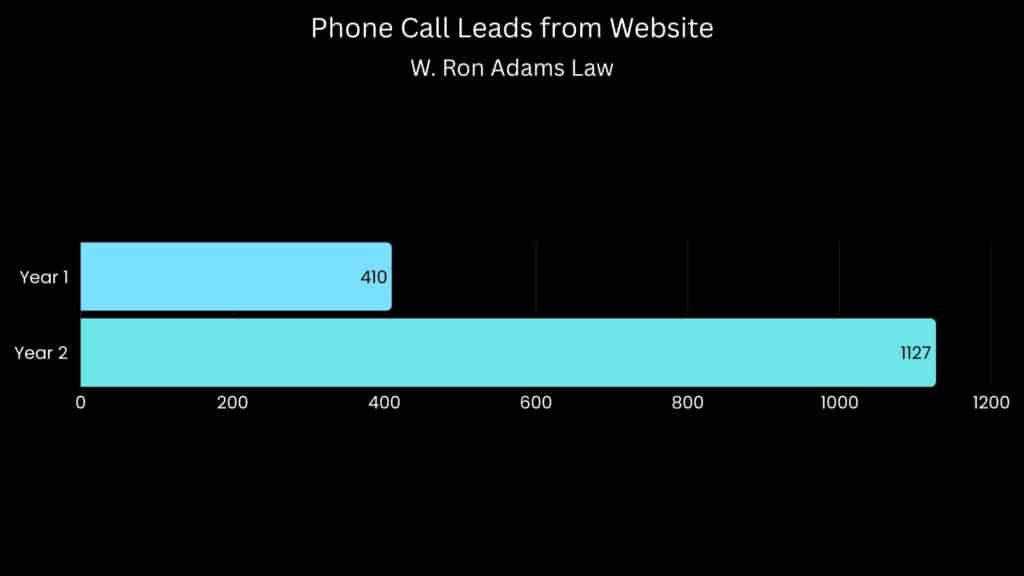 These measurable improvements allowed W. Ron Adams Law to strengthen their online presence, compete more effectively in search results, and generate significantly more opportunities for new business.